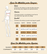 M - Busto até 96 cm l Cintura até 77 cm l Quadril até 102 cm.